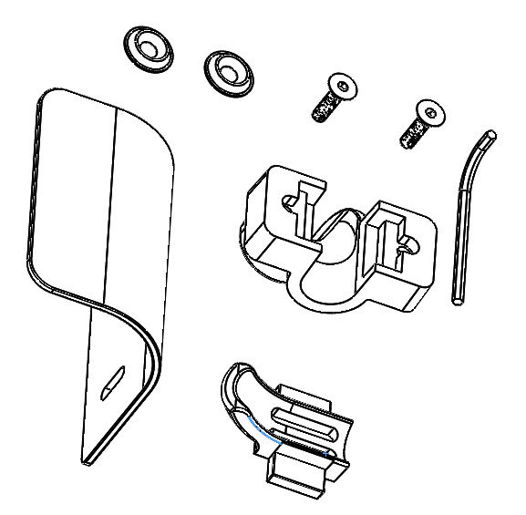 1. Position Item 1 (Bracket) on the underside of the door handle
